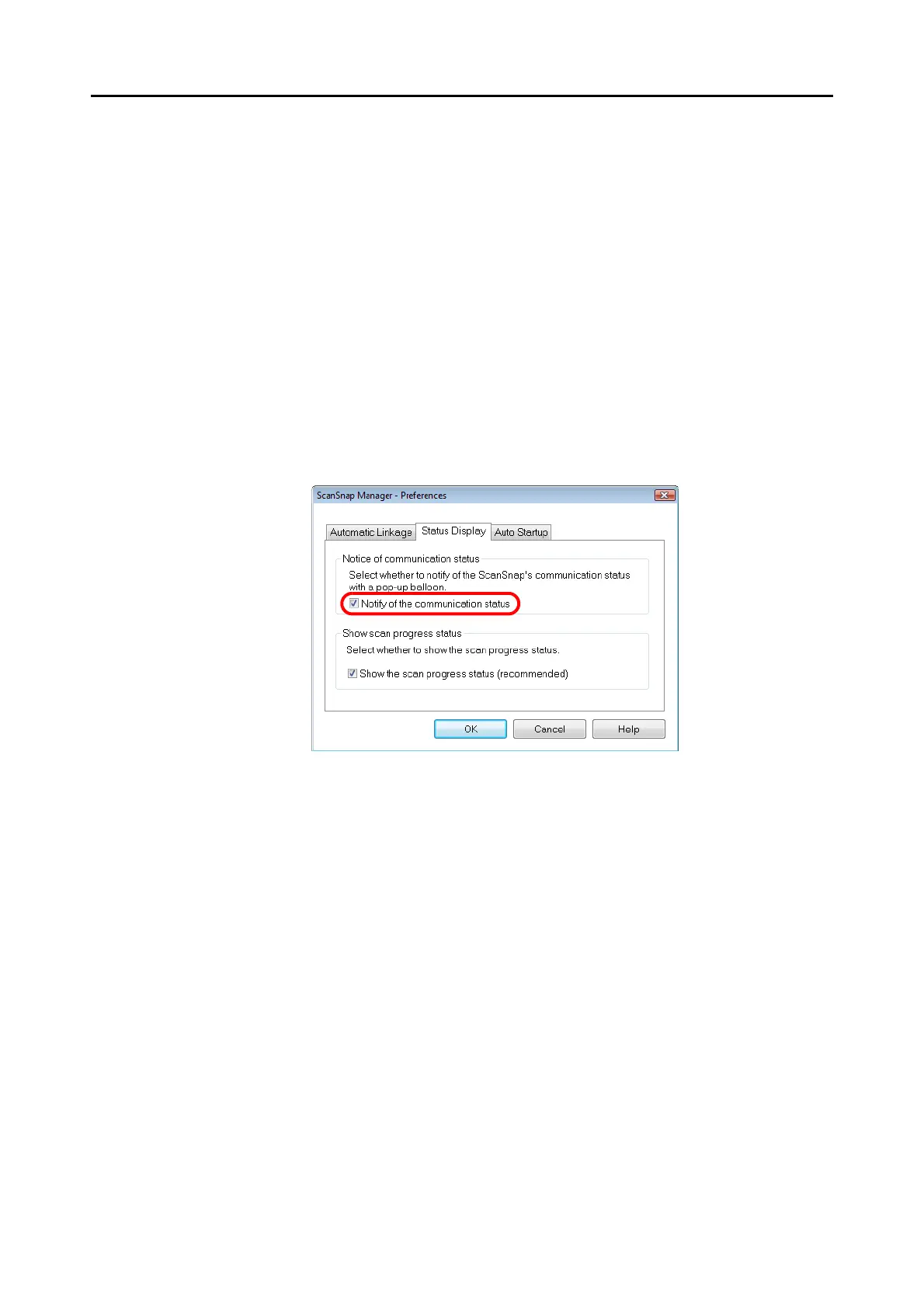 Receiving or hiding the ScanSnap's communication status notifi-