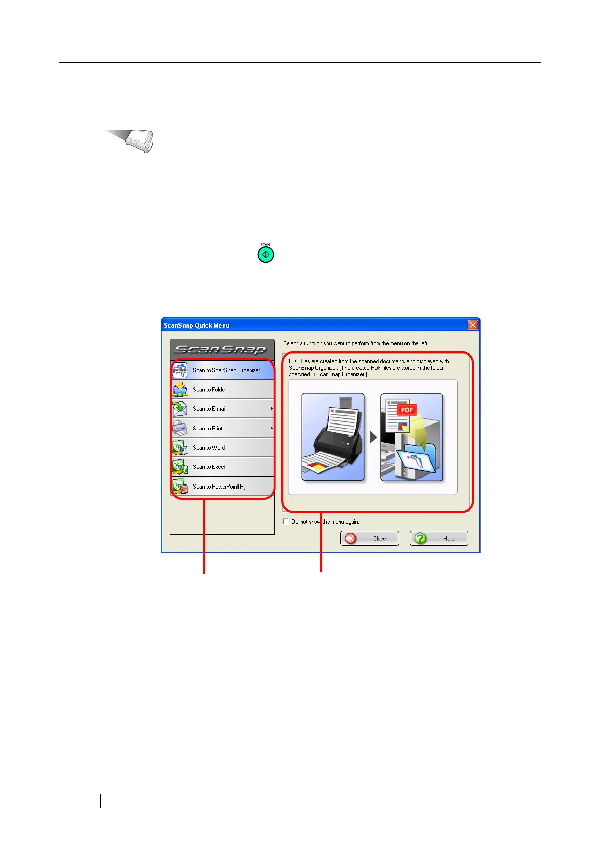 ⇒ When scanning is complete, the ScanSnap Quick Menu appears.