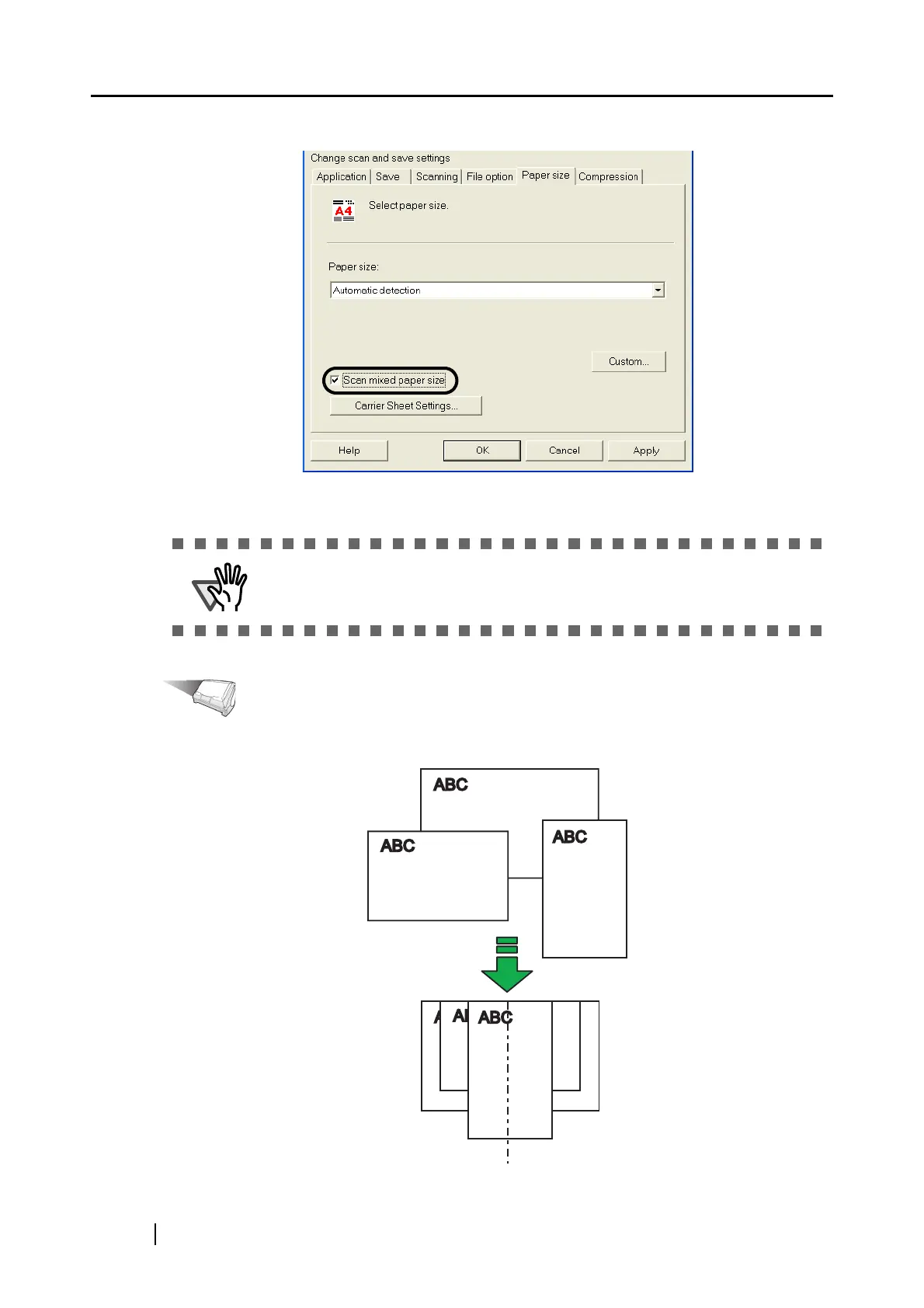 3. Mark the "Scan mixed paper size" checkbox.