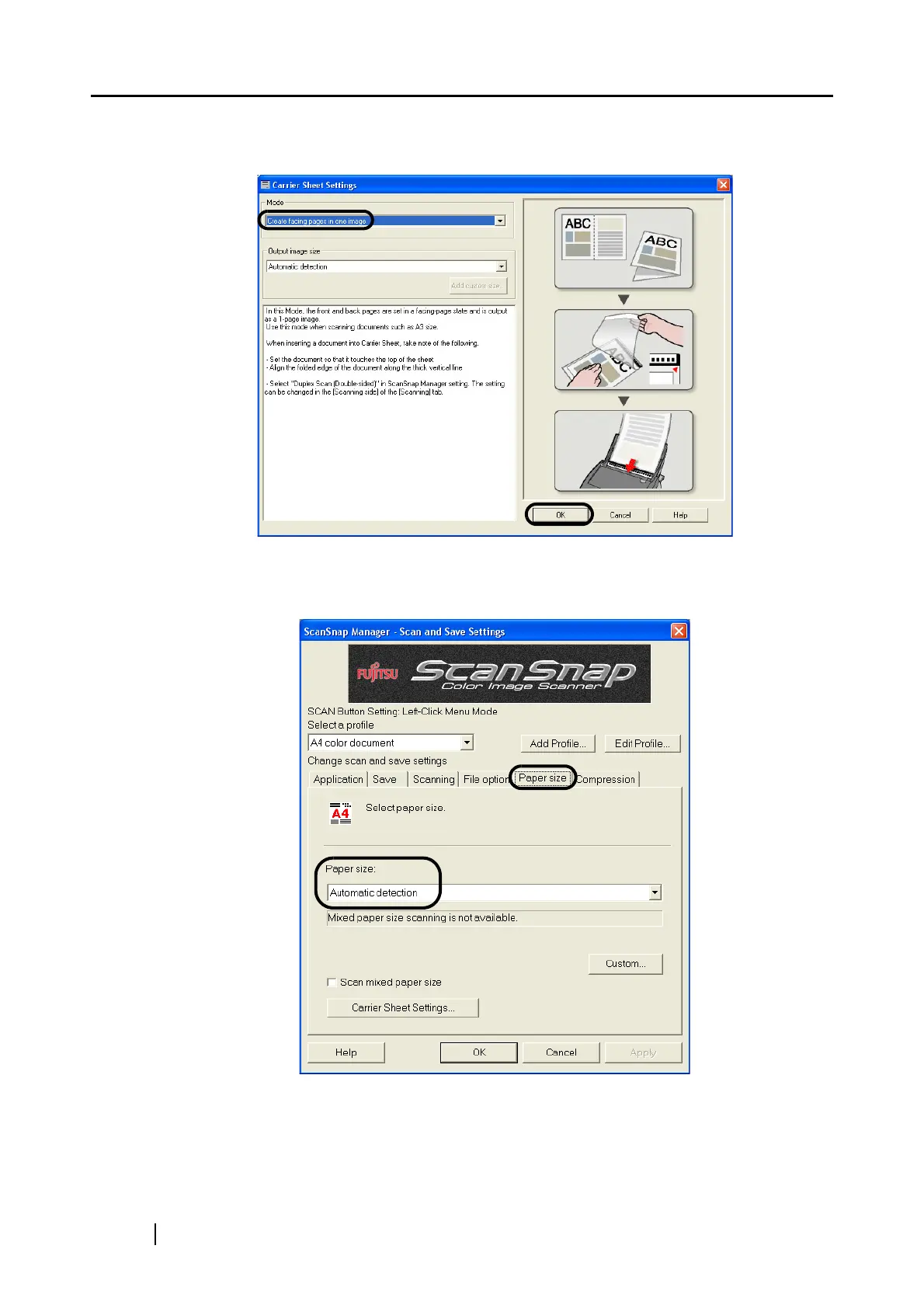 4. Select "Automatic Detection" in the "Paper size" drop-down list on the [Paper size]