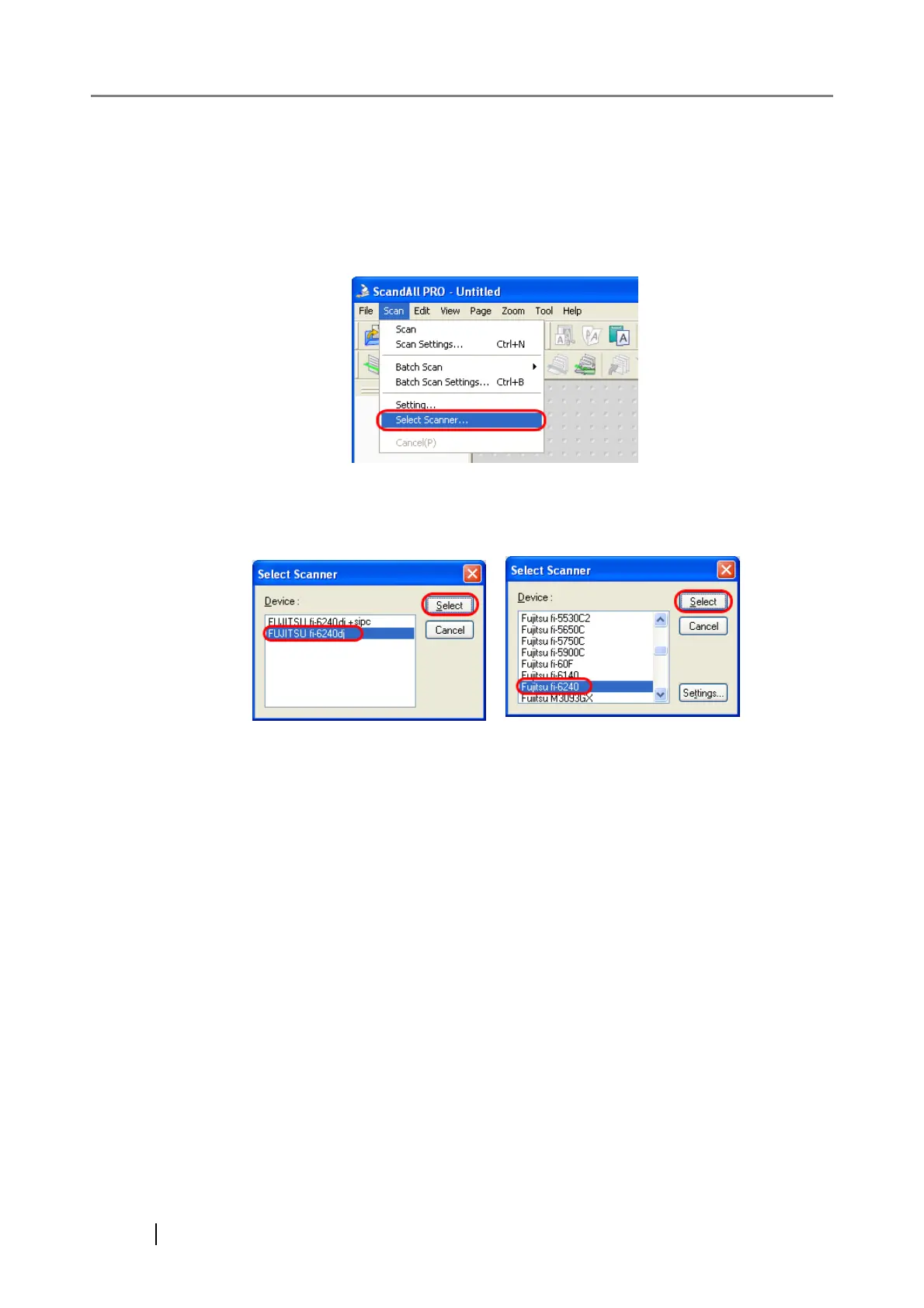 1. From the [Scan] menu, select [Select Scanner].
