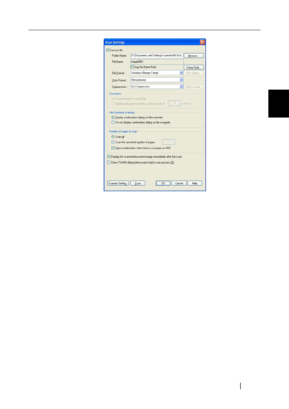 this case document is scanned by the setting specified by the driver dialog box in Section