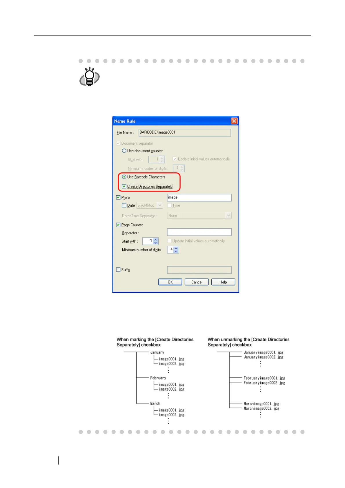 Directories Separately] checkbox in the [Name Rule] dialog box.