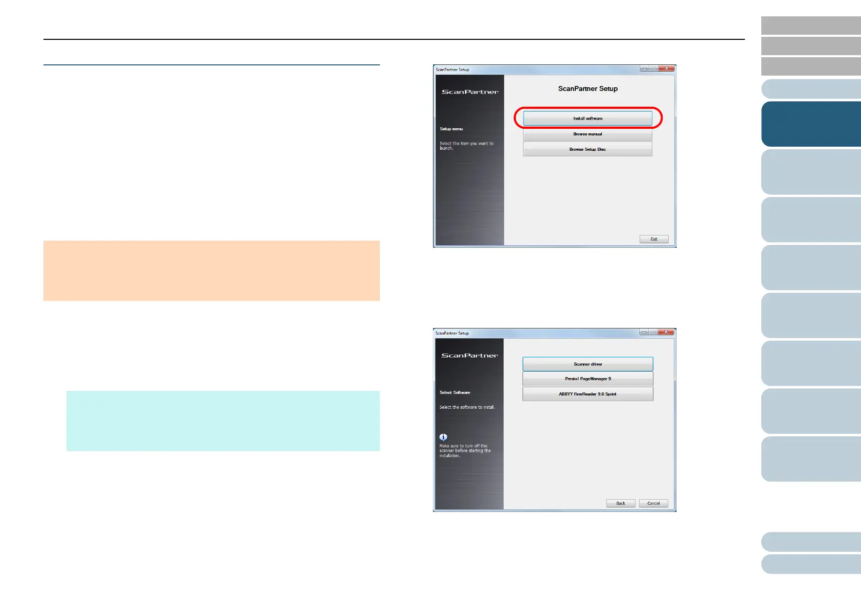 If the [ScanPartner Setup] dialog box is not displayed, use either
