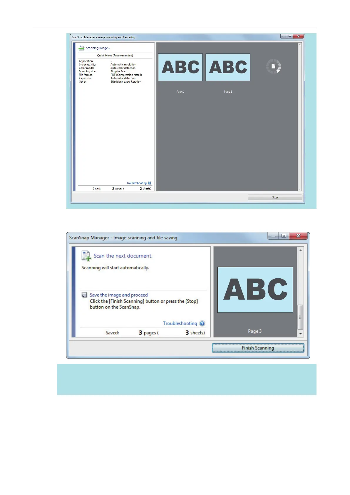 a When scanning is complete, the [ScanSnap Manager - Image scanning and file saving]