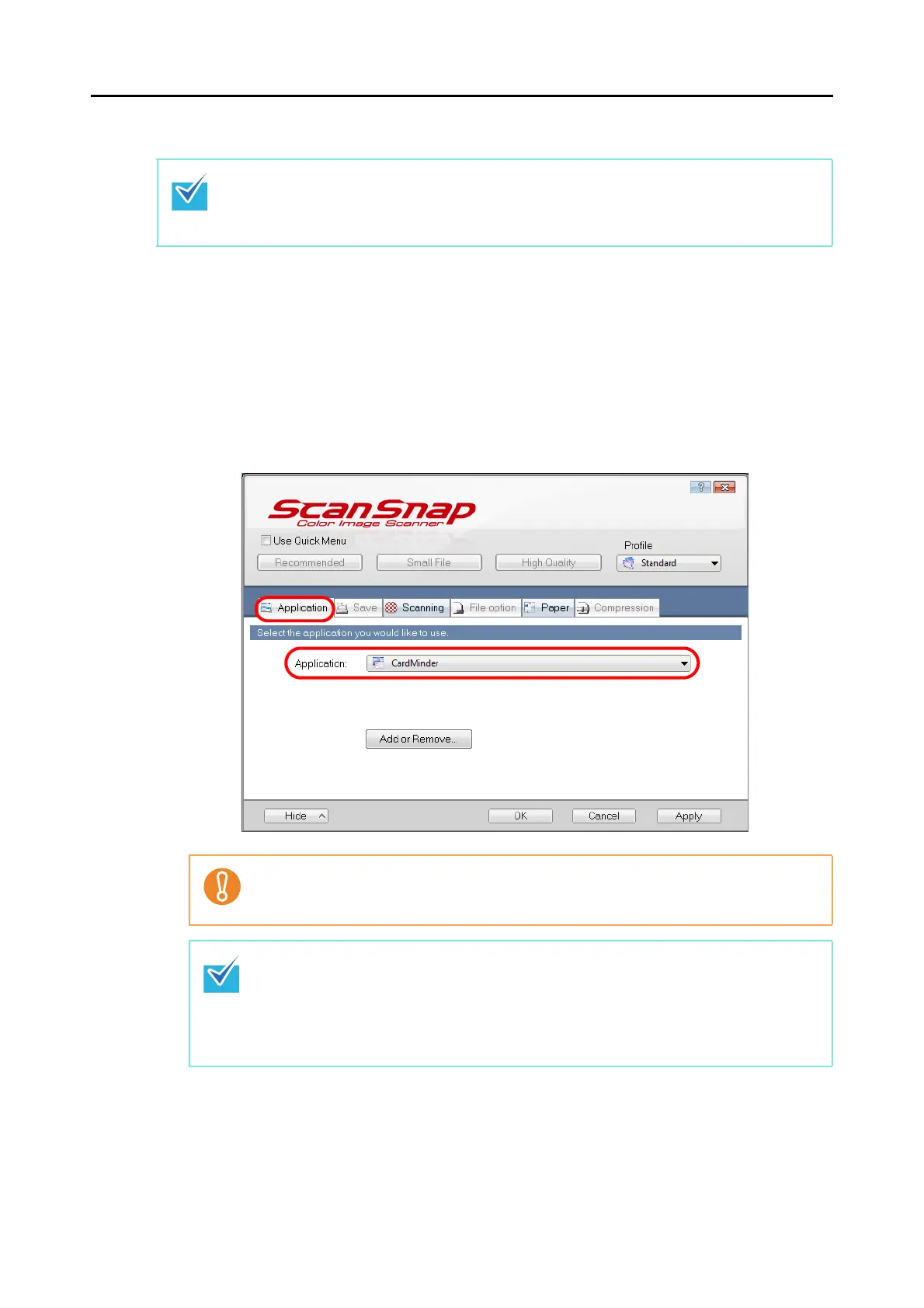 z You can also configure the profile by selecting [CardMinder] from the [Profile] drop-down