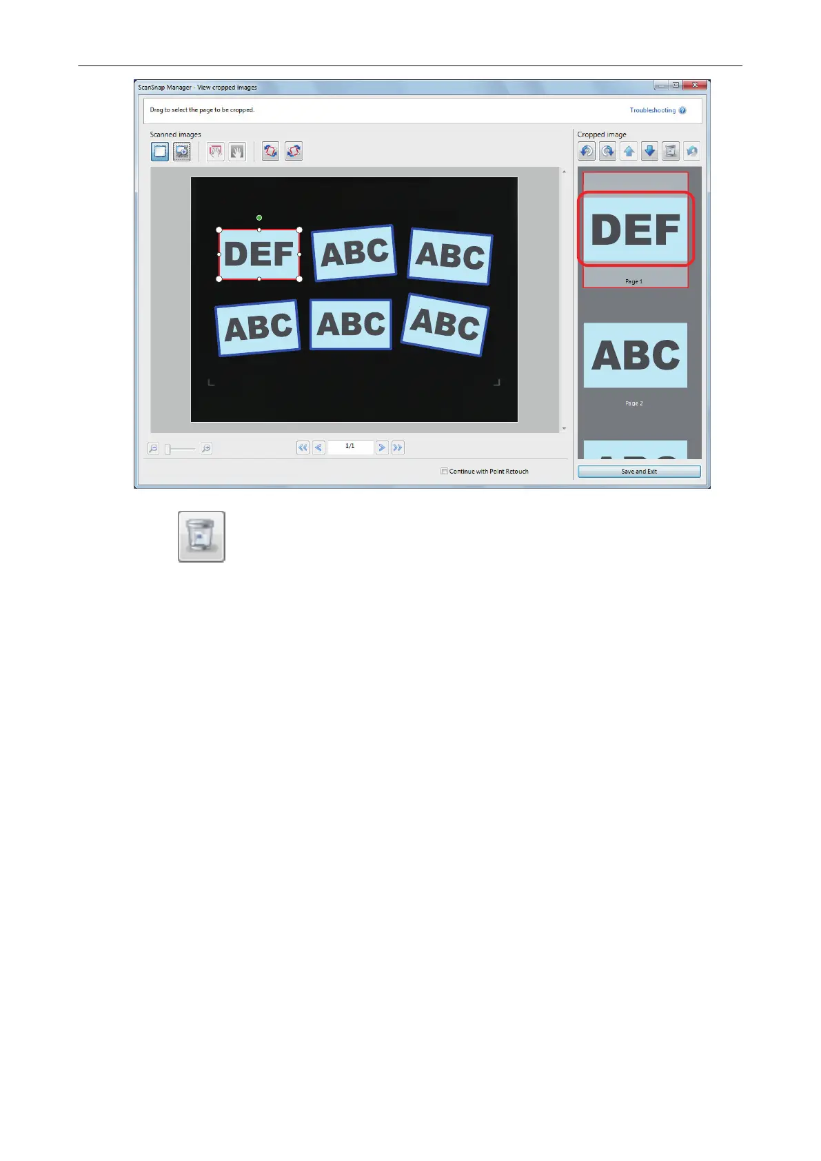 a The crop frame is removed from the selected scanned image, and the scanned image