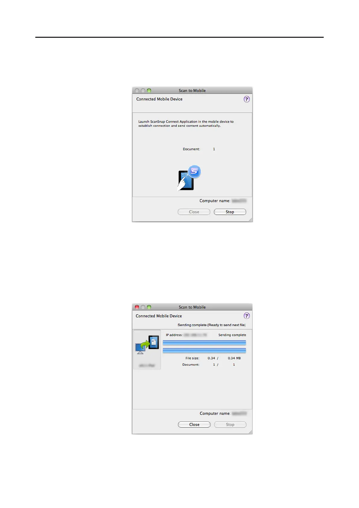 D The [Scan to Mobile] window appears on the computer when the scanning is