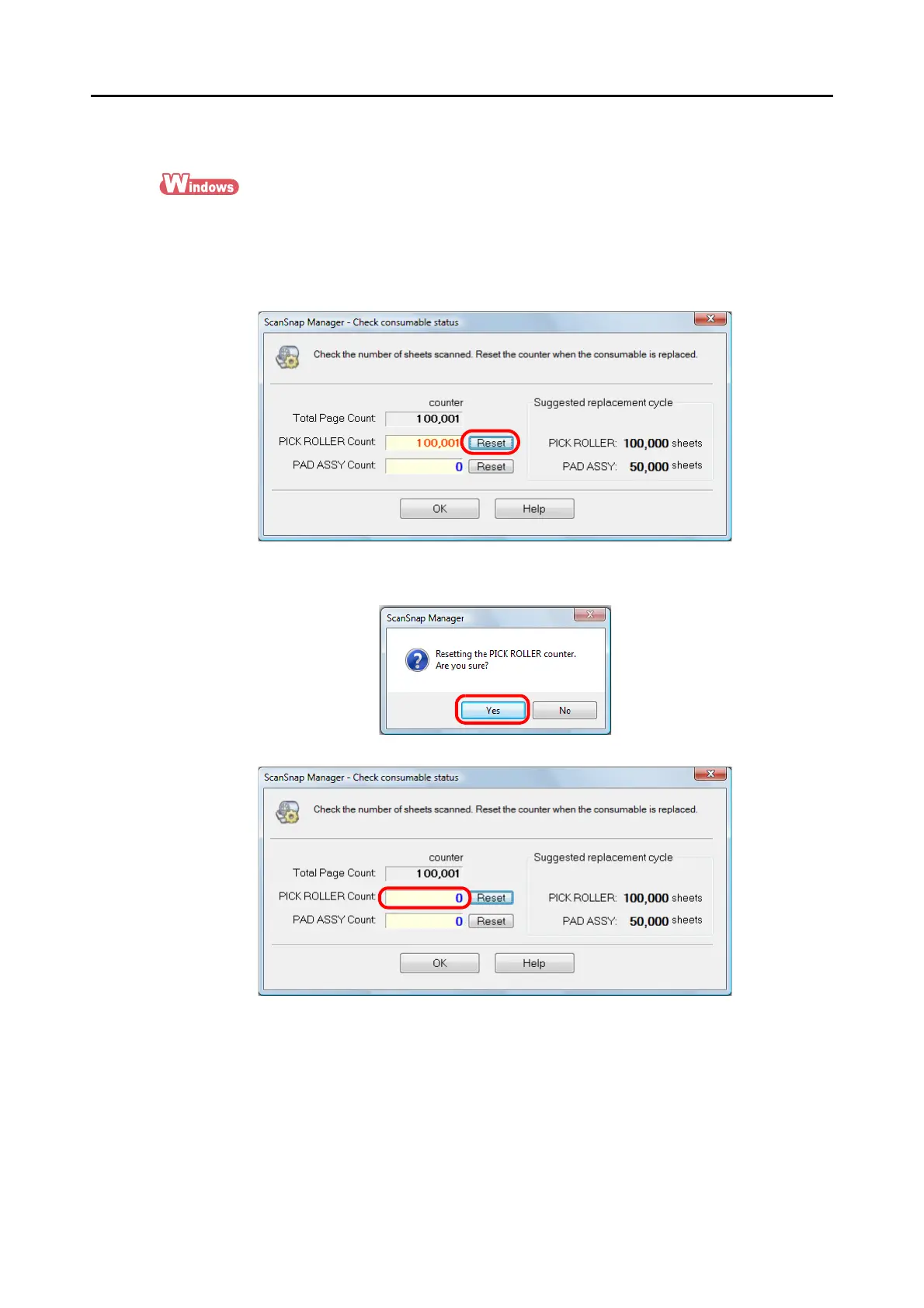 2. Click the [Reset] button for [PICK ROLLER Count].