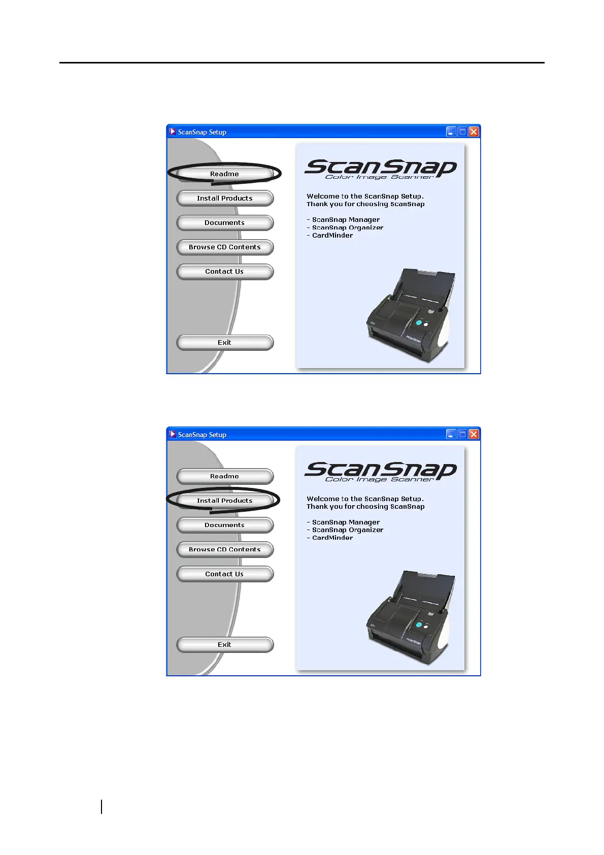 2. Click the [Readme] button in the "ScanSnap Setup" window.