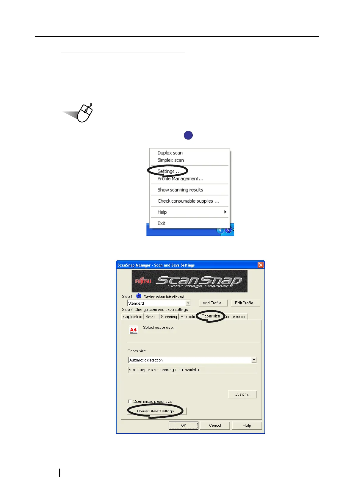 1. Right-click "ScanSnap Manager" icon on the taskbar, and select "Settings."
