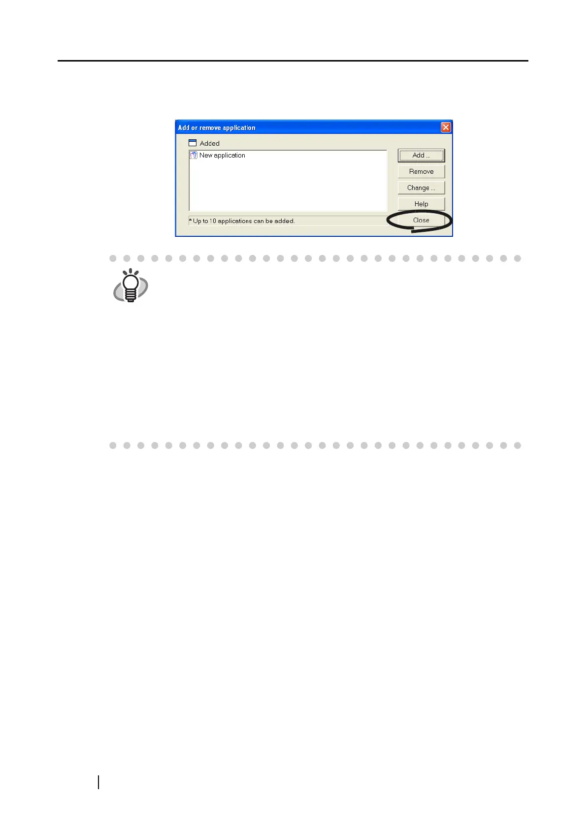 3) Confirm that the application has been removed, and then click the [Close] button.