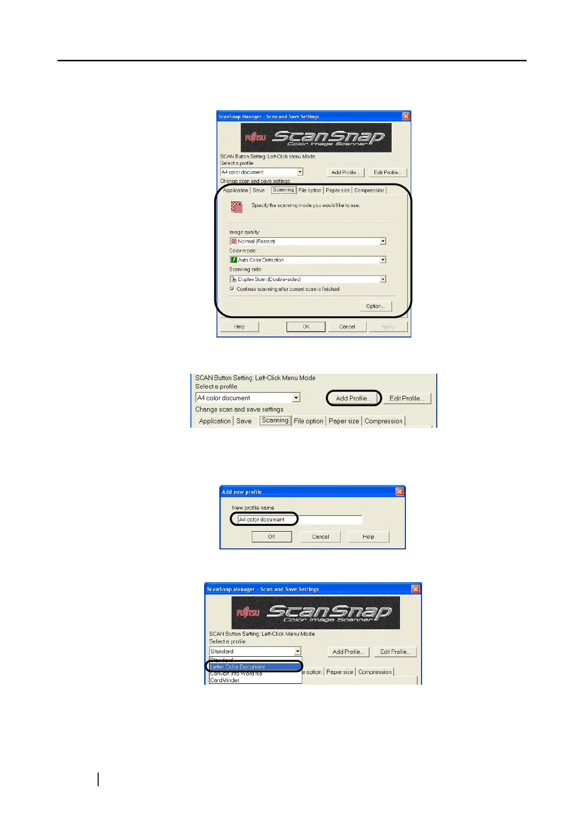 3. In the "ScanSnap Manager - Scan and Save Settings" dialog box, change scanning