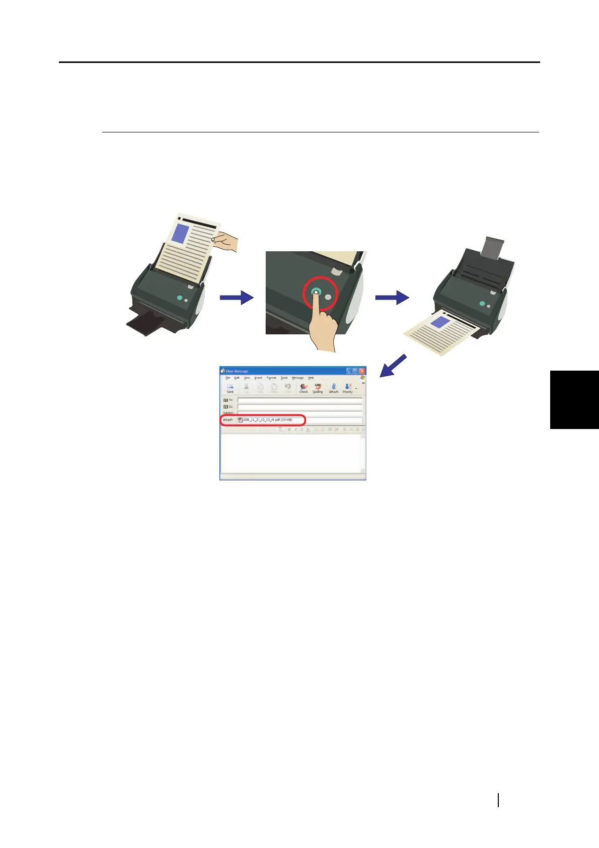 After documents are scanned with the ScanSnap, document files are created and an e-mail message