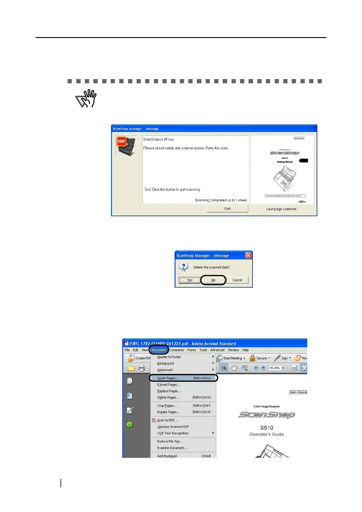 2. Click the [Yes] button to delete the data that has been scanned up to the interruption,