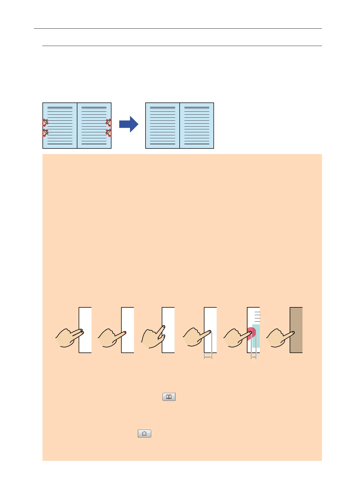 If a book is scanned in the following ways, captured fingers may not be detected correctly.