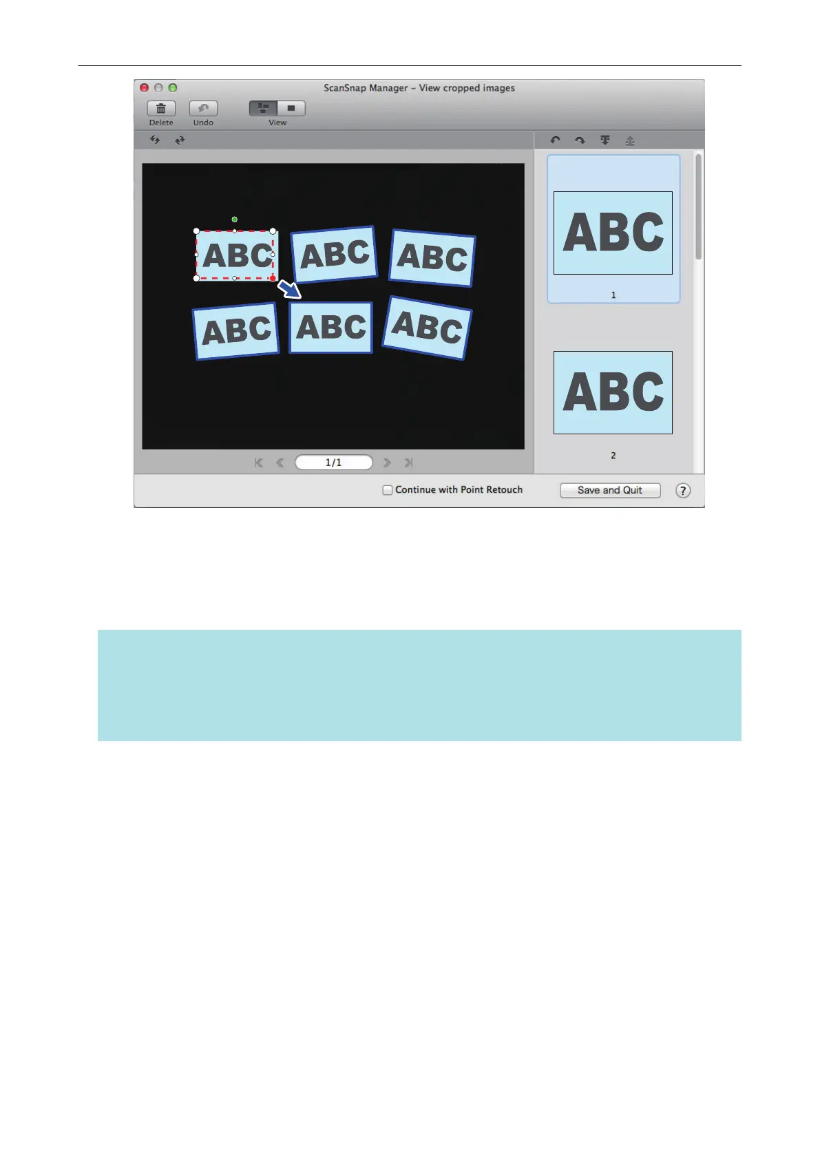 When you have completed changing the crop area, click the [Save and Quit] button.