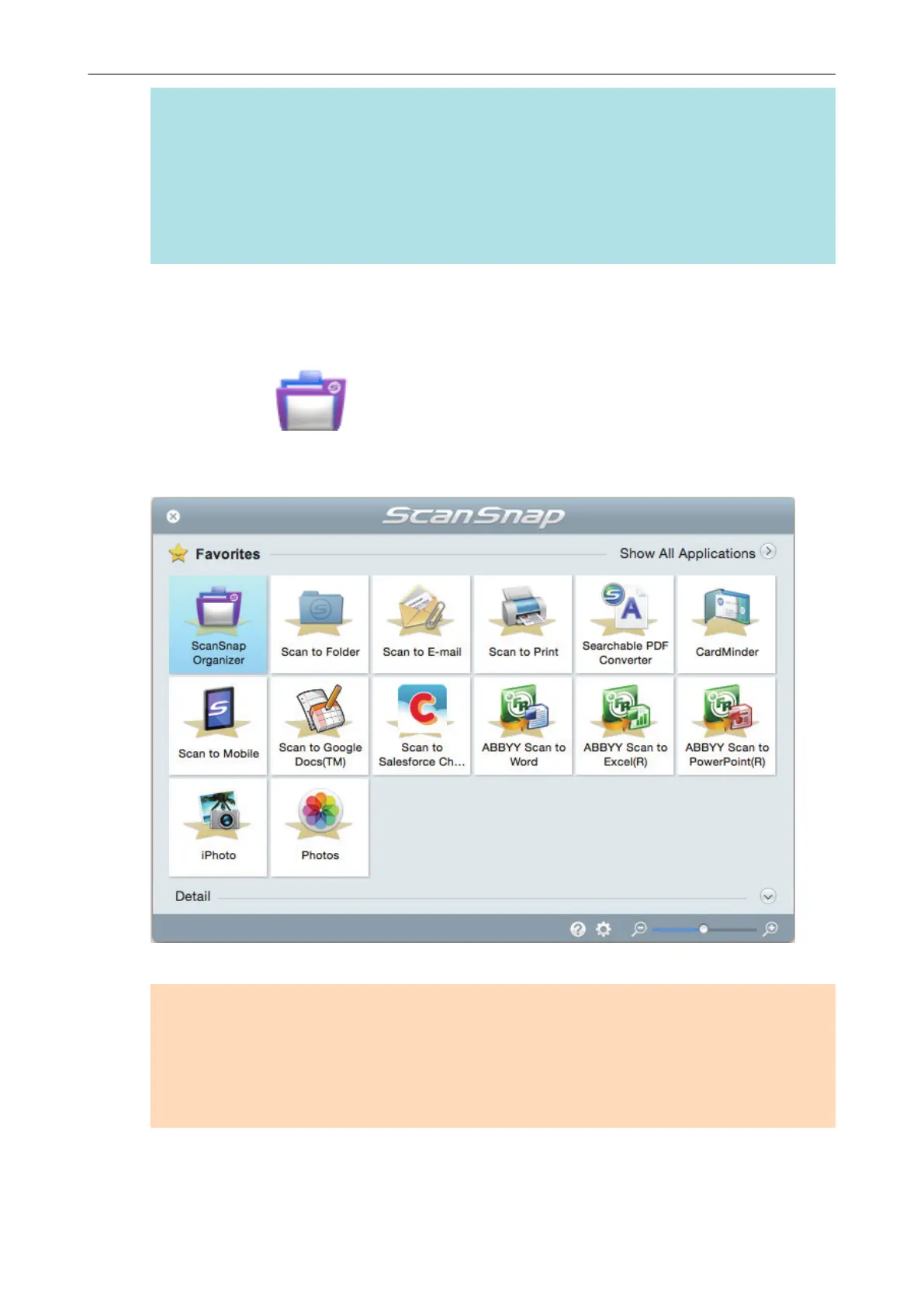 6. In the Quick Menu, click the icon of the application to link with ScanSnap