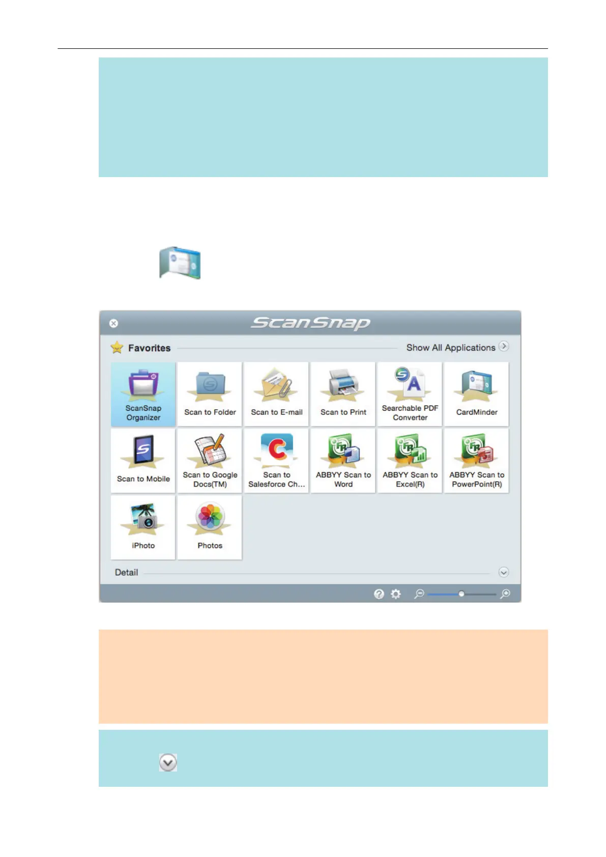 6. In the Quick Menu, click the icon of the application to link with ScanSnap