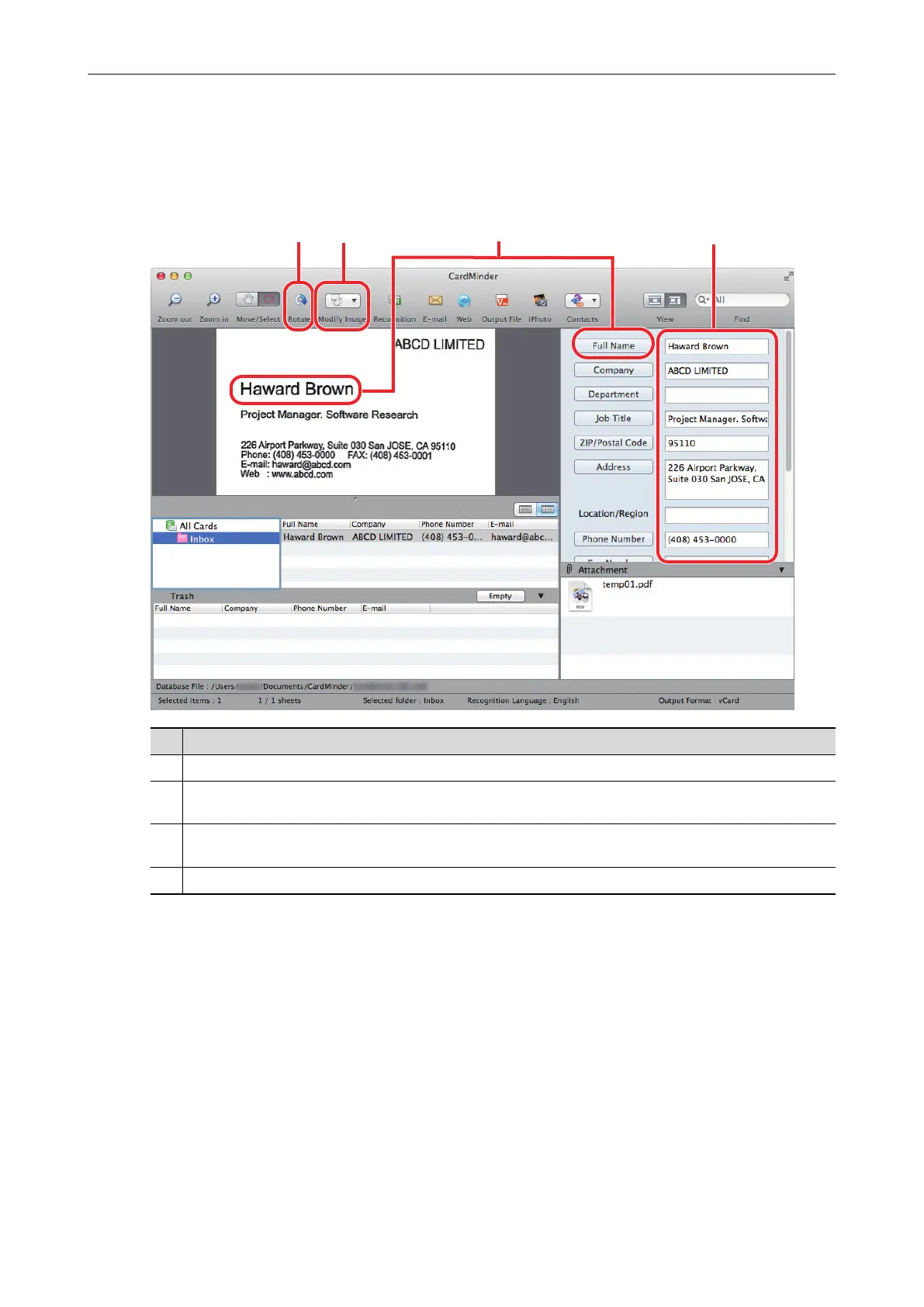 3 By selecting character strings in the card image and then clicking the buttons of the appropriate fields in