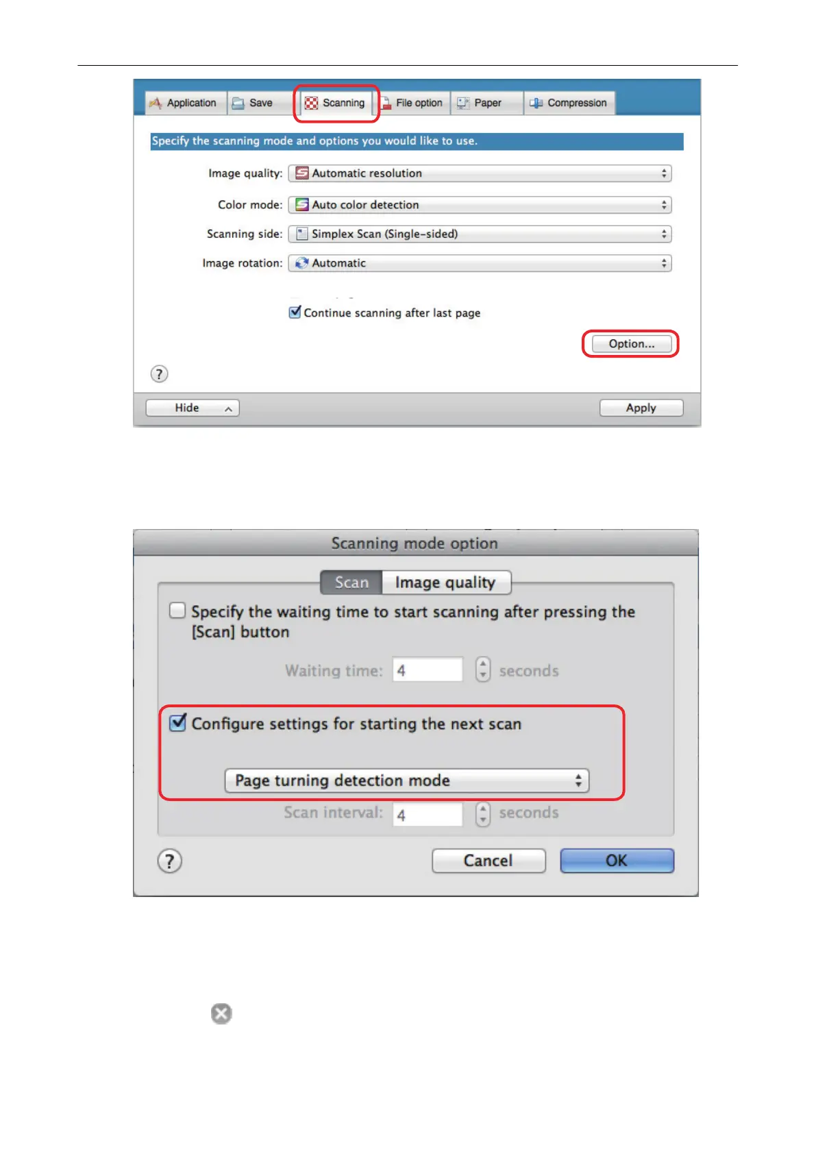 4. Click the [OK] button to close the [Scanning mode option] window.
