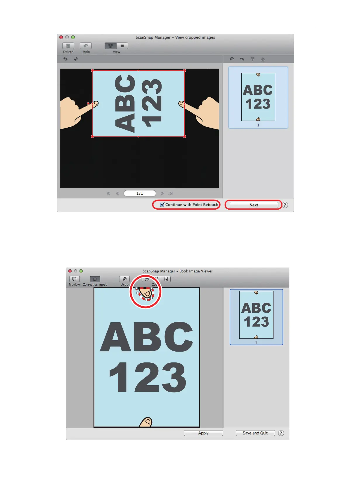 a The [ScanSnap Manager - Book Image Viewer] window appears in the point retouch mode.