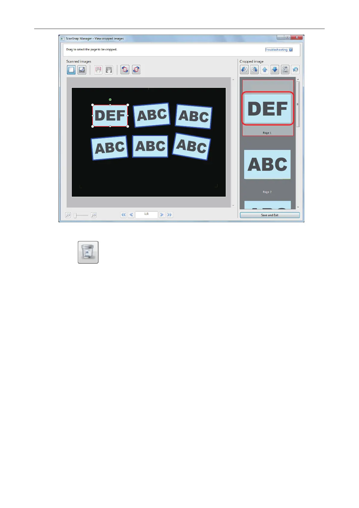 a The crop frame is removed from the selected scanned image, and the scanned image