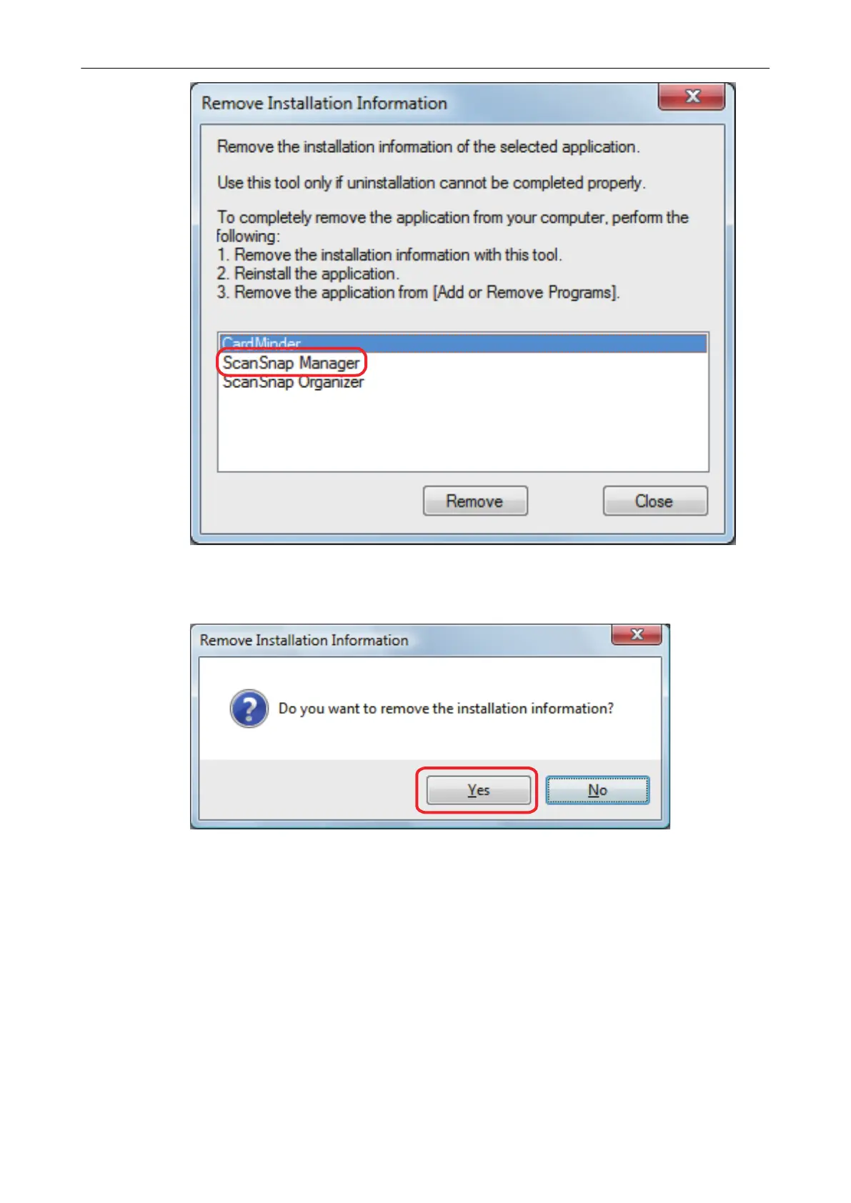 3. Click the [Yes] button to remove and the [No] button to keep the profile information.