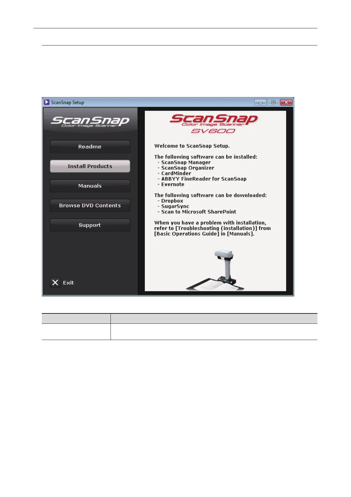 When you insert the Setup DVD-ROM into the DVD-ROM drive on your computer, the [ScanSnap