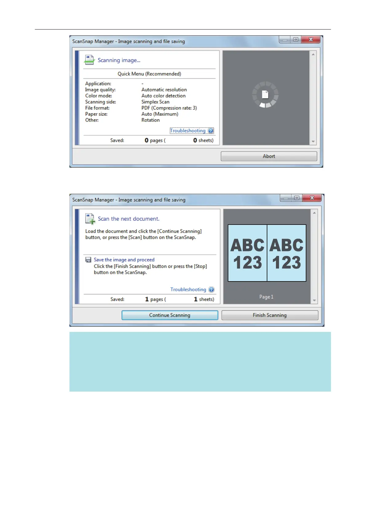l Click the [Continue Scanning] button in the [ScanSnap Manager - Image scanning and file