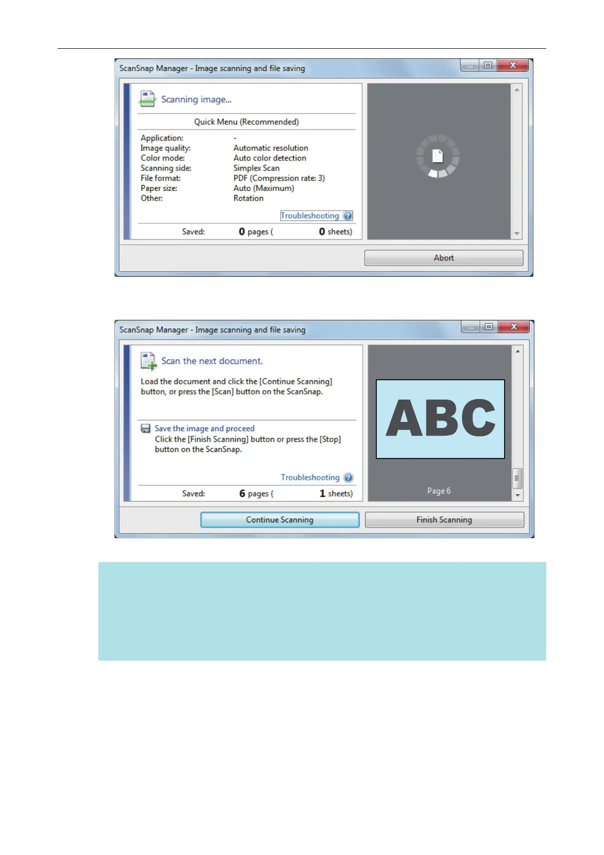 l Click the [Continue Scanning] button in the [ScanSnap Manager - Image scanning and file