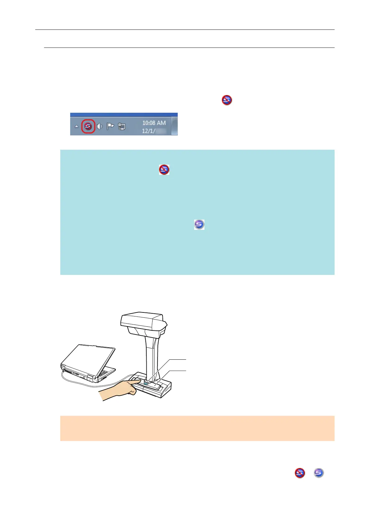 In addition, the ScanSnap Manager icon in the notification area changes from to .