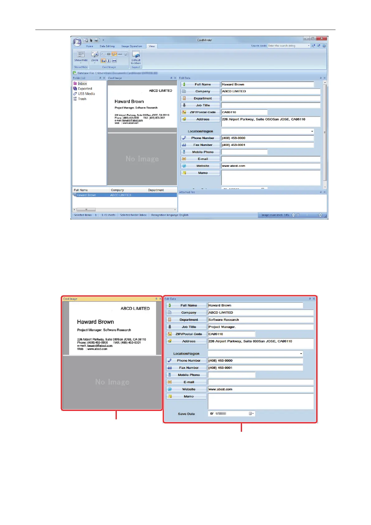 If the card data must be corrected, click the text to be corrected and then directly edit it.