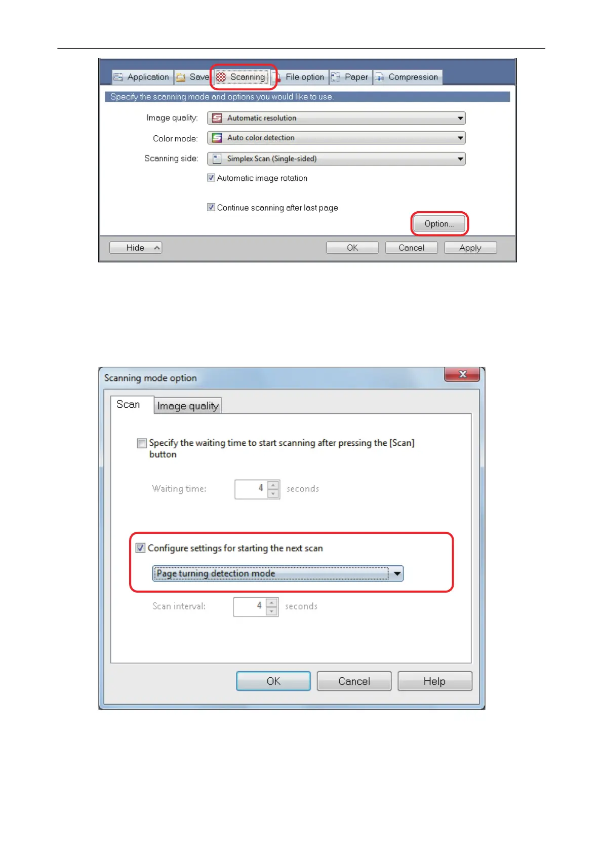 3. Select the [Configure settings for starting the next scan.] check box and then