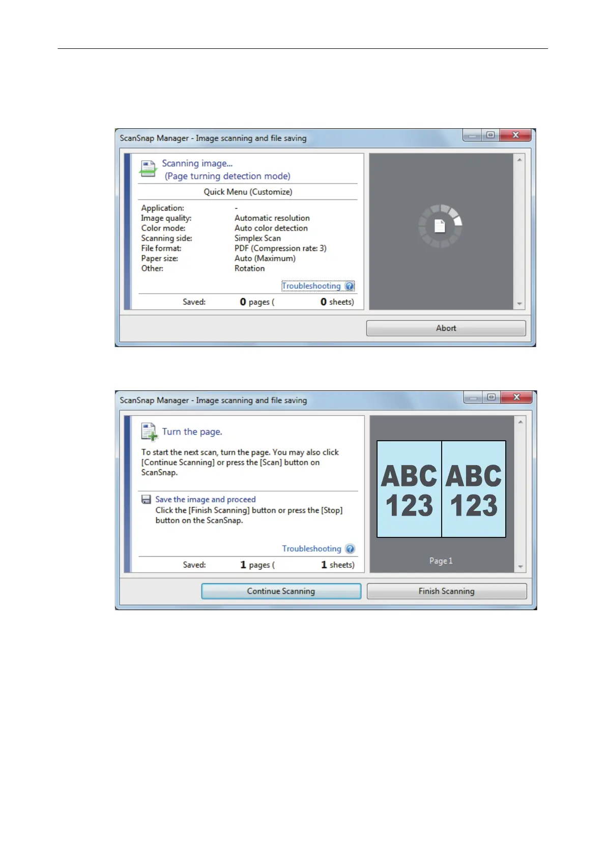 a The [ScanSnap Manager - Image scanning and file saving] window appears.