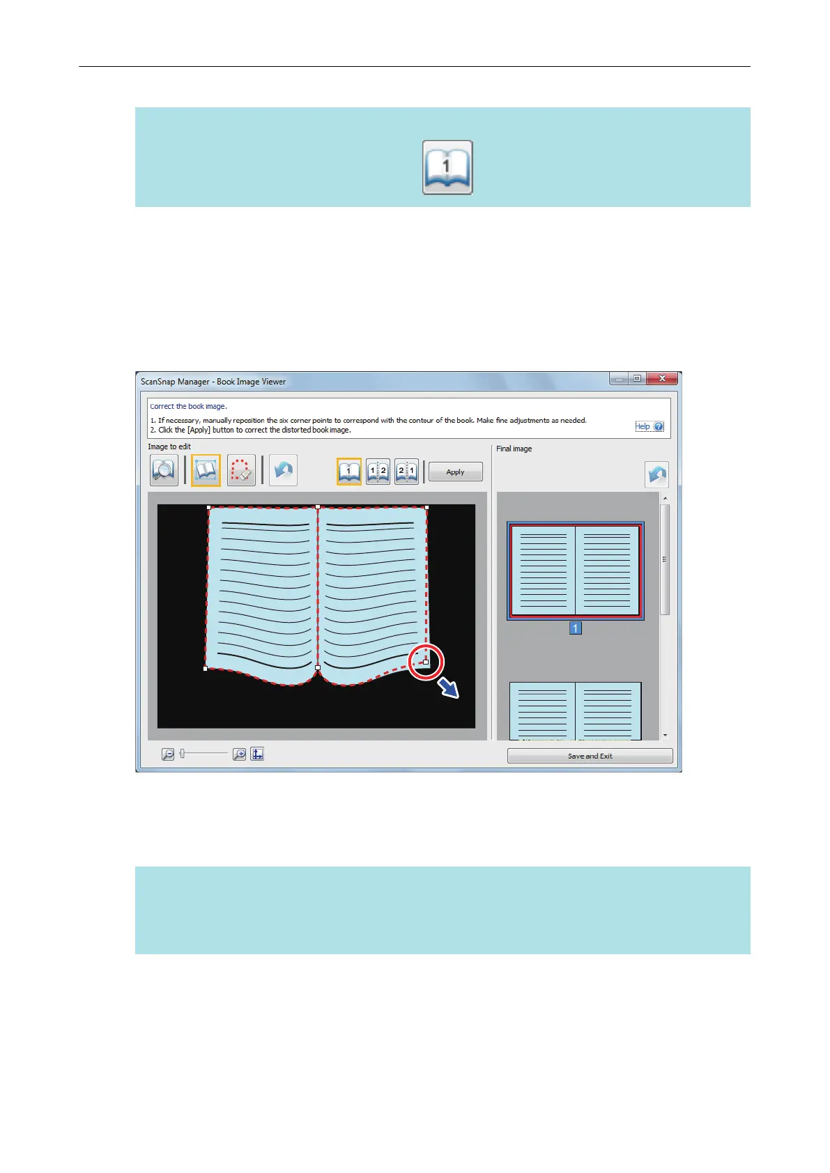 If the outline of the book is not aligned with the shape of the book in the scanned image, drag