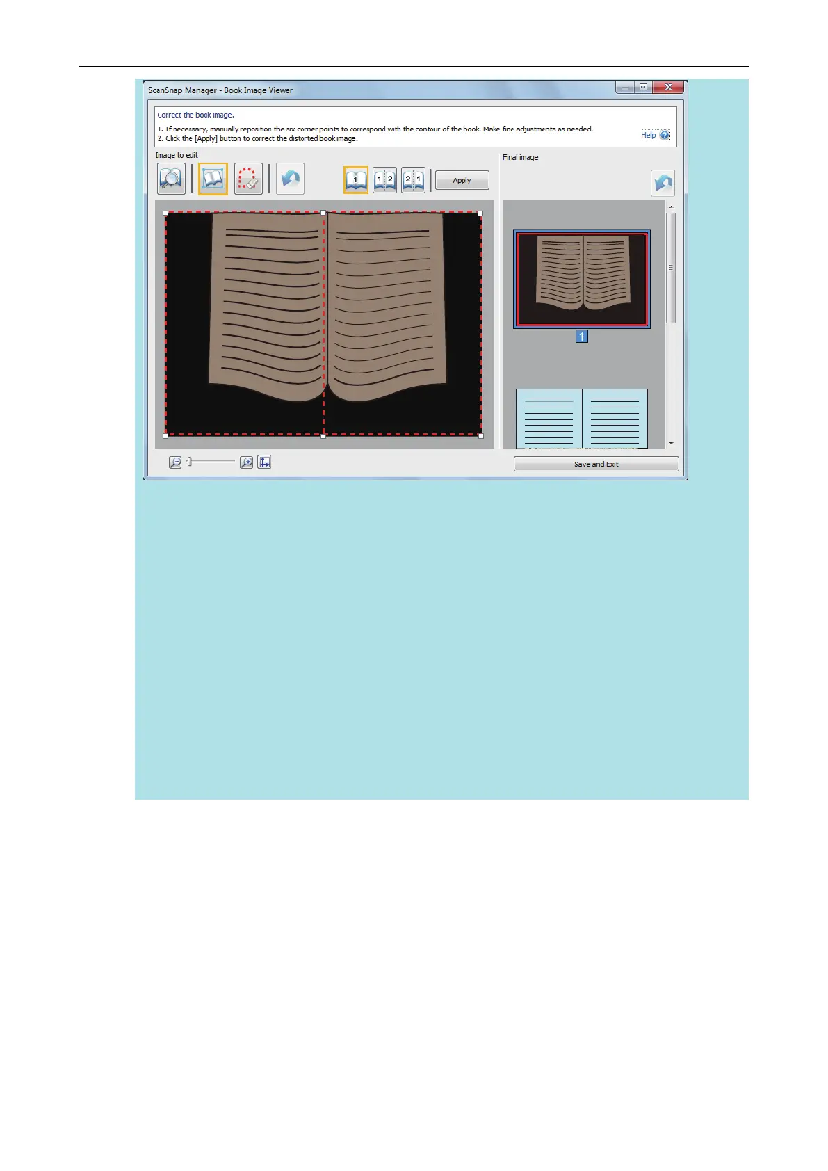 When you have completed correcting the page distortion, click the [Save and Exit] button.