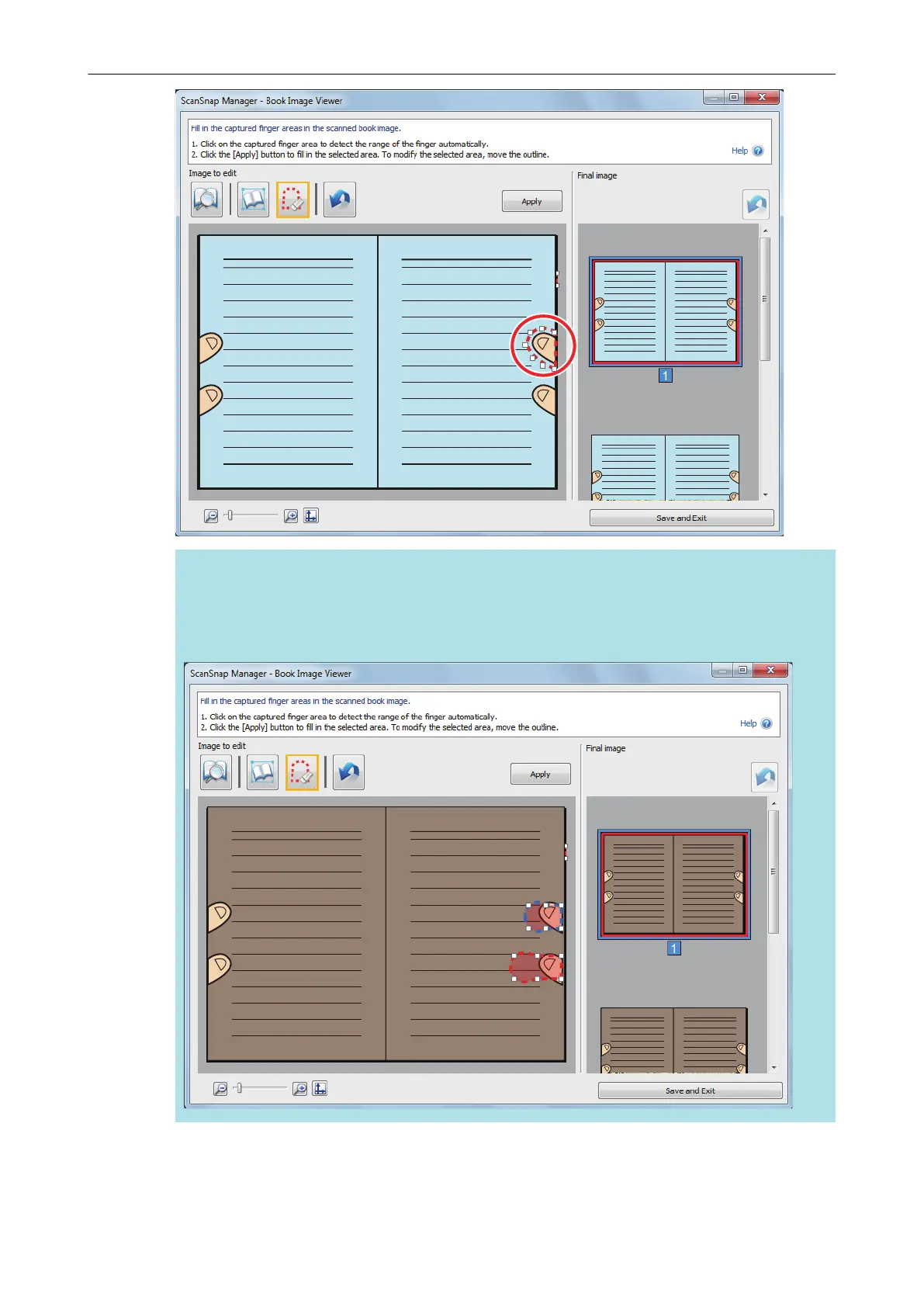 When a finger captured in a scanned image is not detected, a default outline is displayed