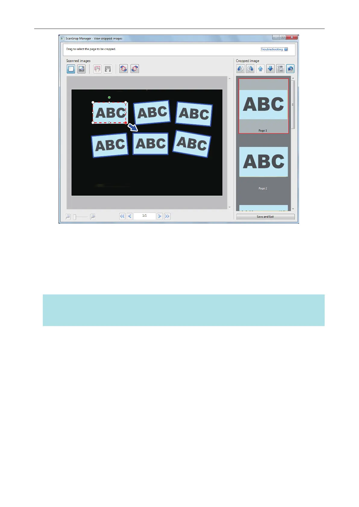 When you have completed changing the crop area, click the [Save and Exit] button.
