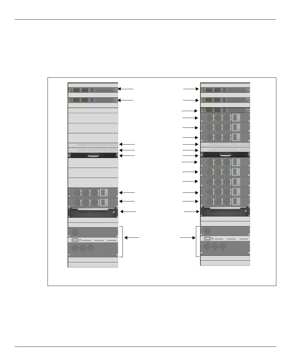 The figure below shows how the basic rack of the SE700 is equipped with the components
