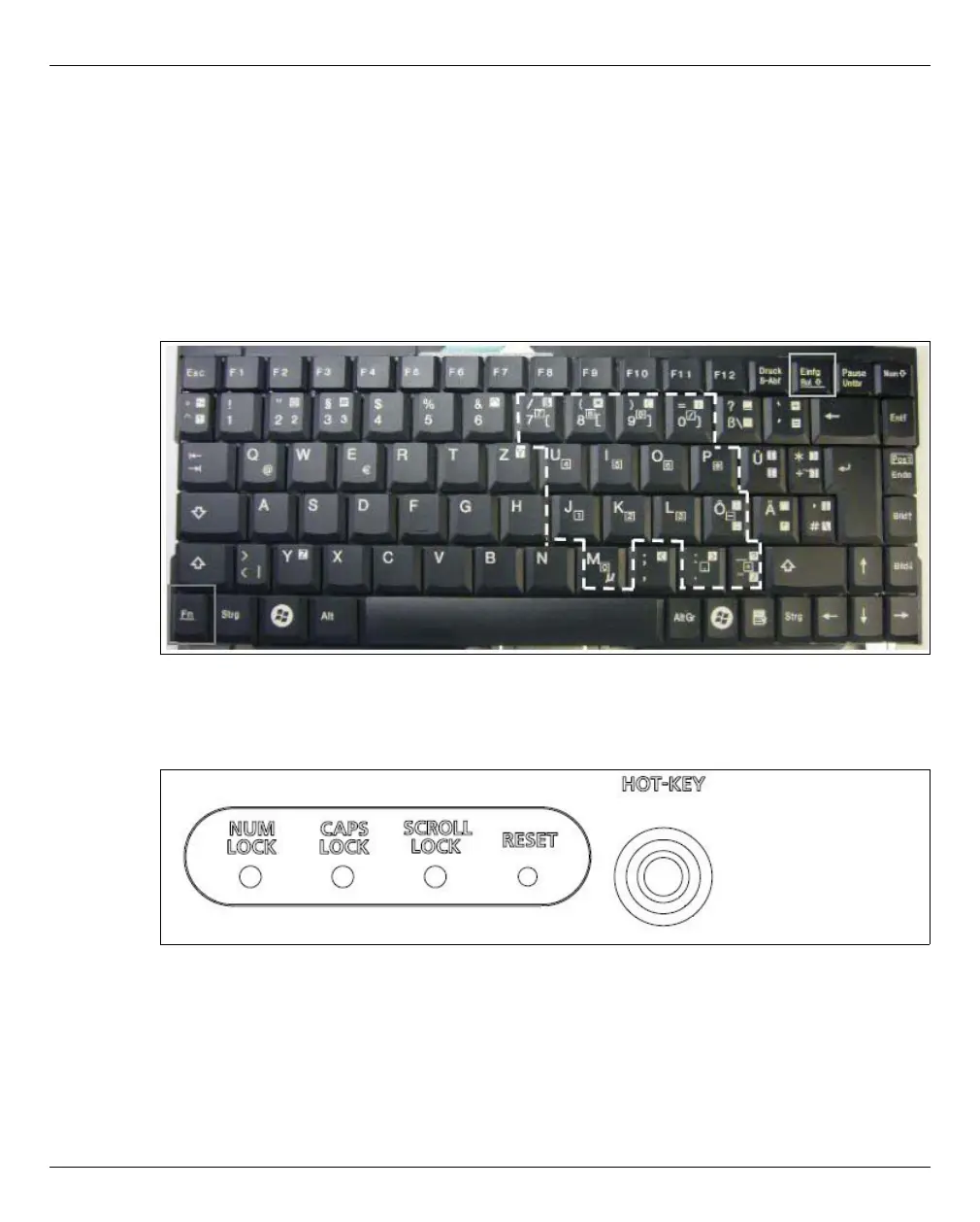 Using the Fn key on the compact layout keyboard of this device allows functions equivalent
