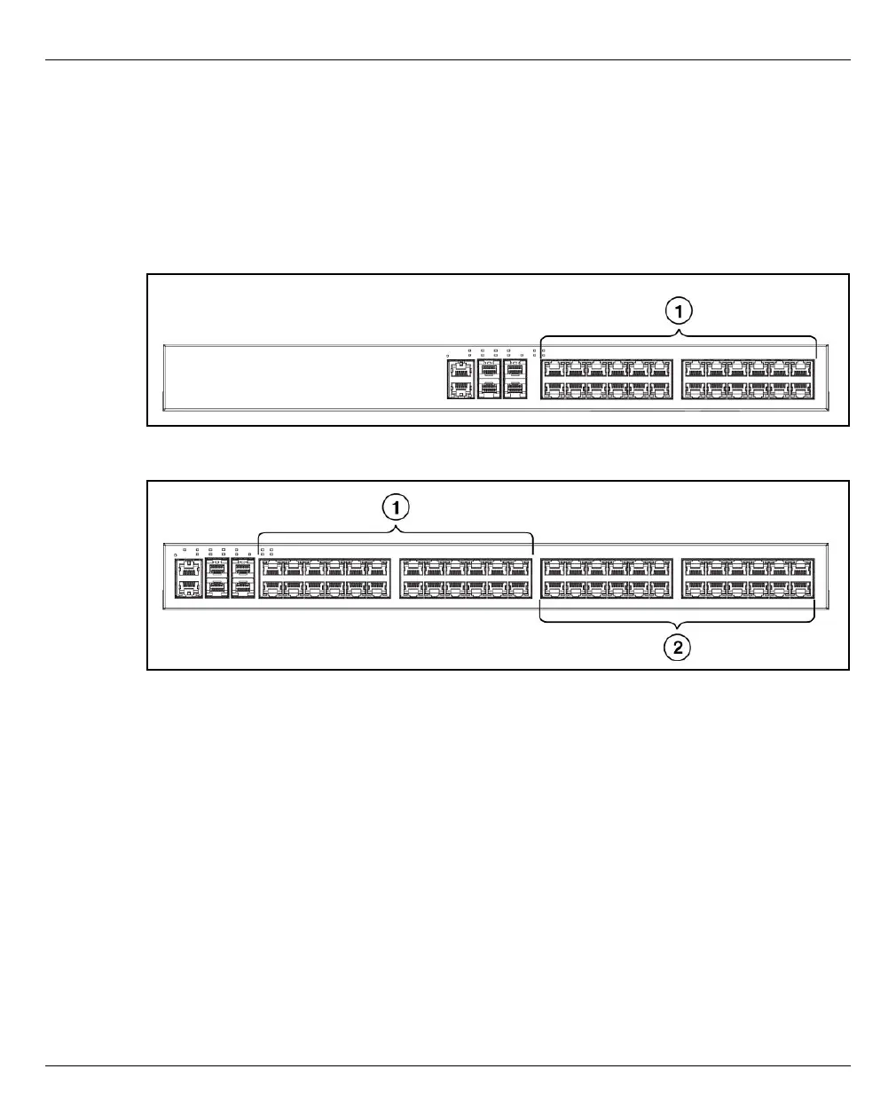 (1) or (1) and (2) display the ports with status LEDs.