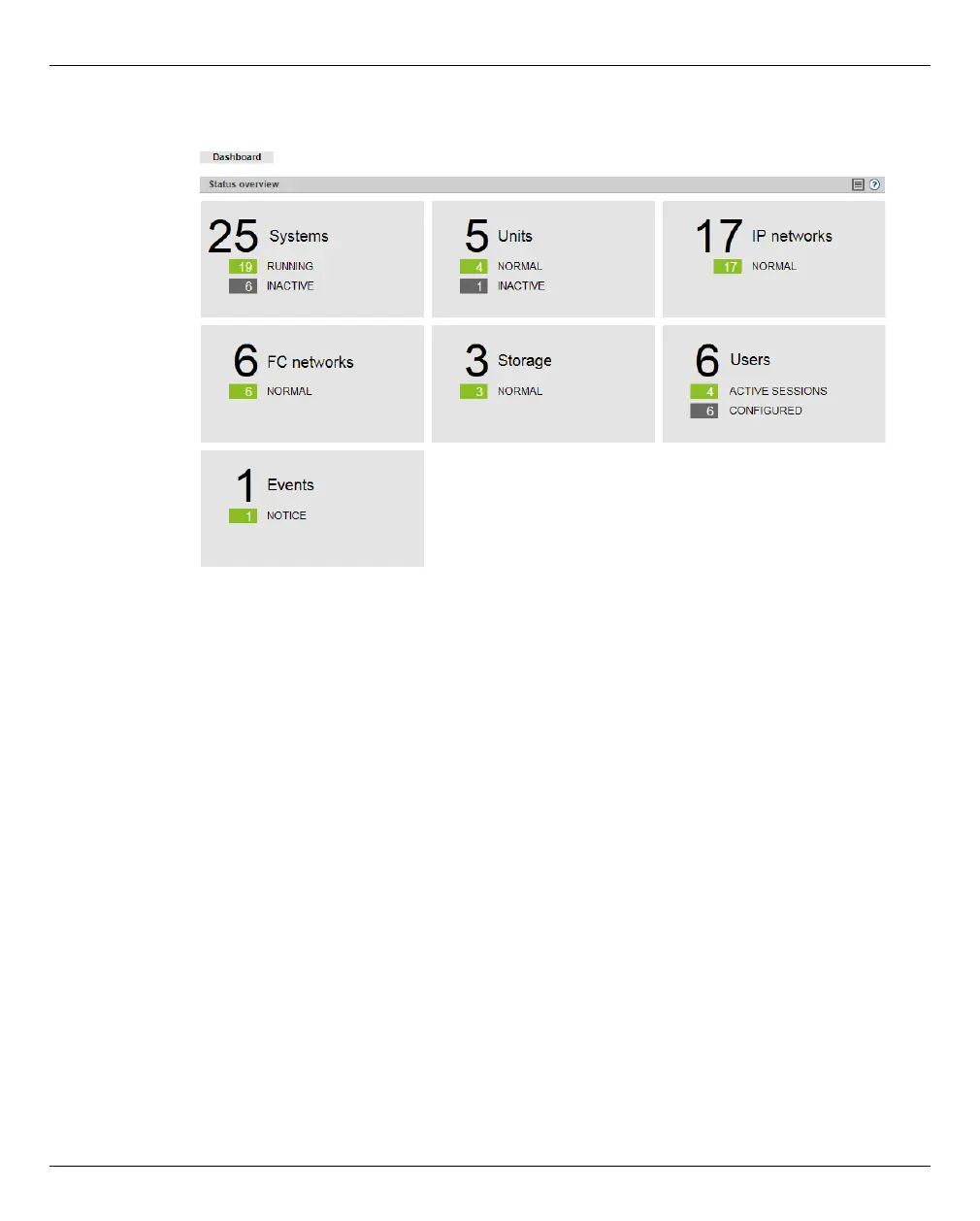 The Dashboard tab with the Status overview group opens. This enables you to see at a