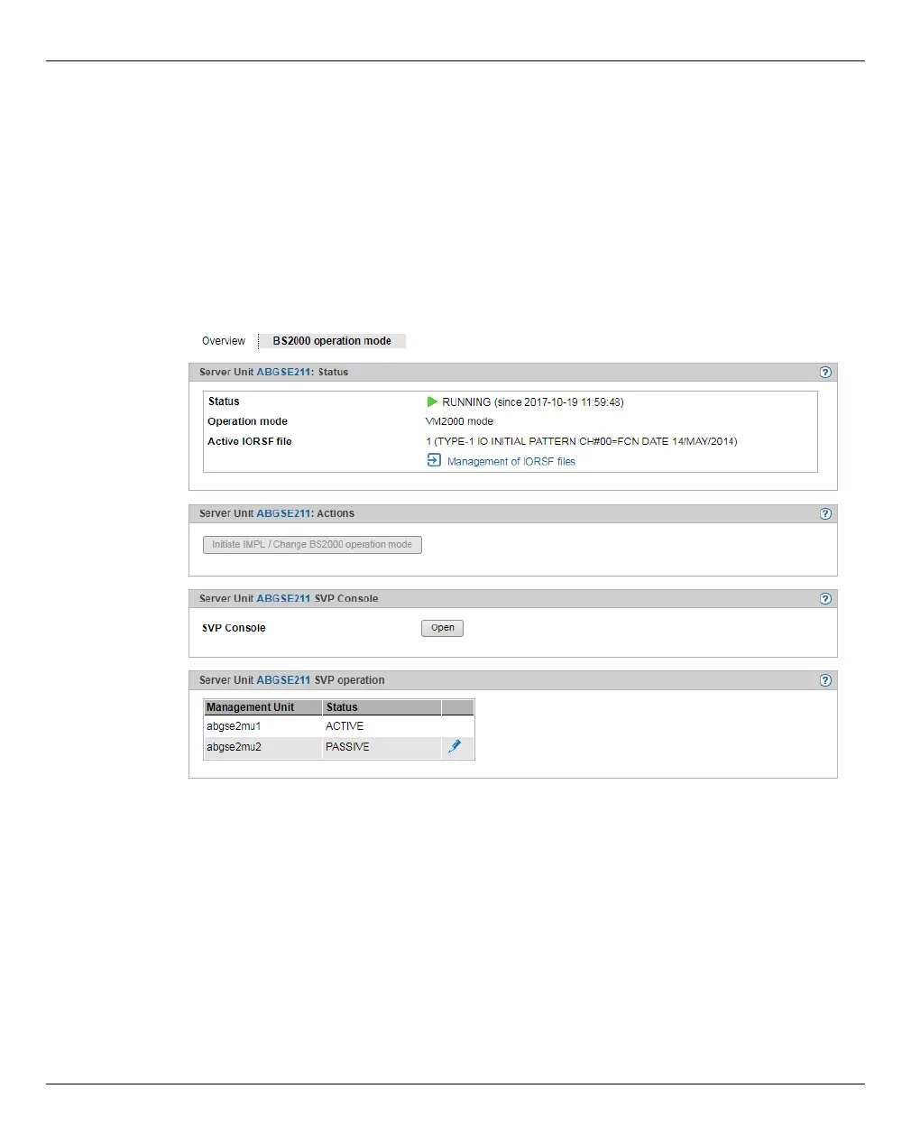 BS2000 mode or VM2000 mode) and permits this setting to be changed in the Actions