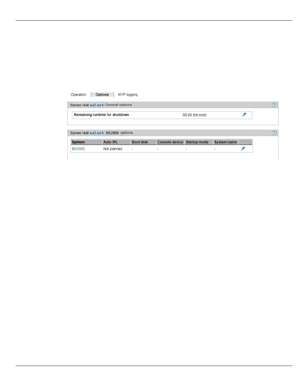 Ê Select Systems → [<se server>(SE<model>) →] <unit> (SU<model>) → BS2000, Options