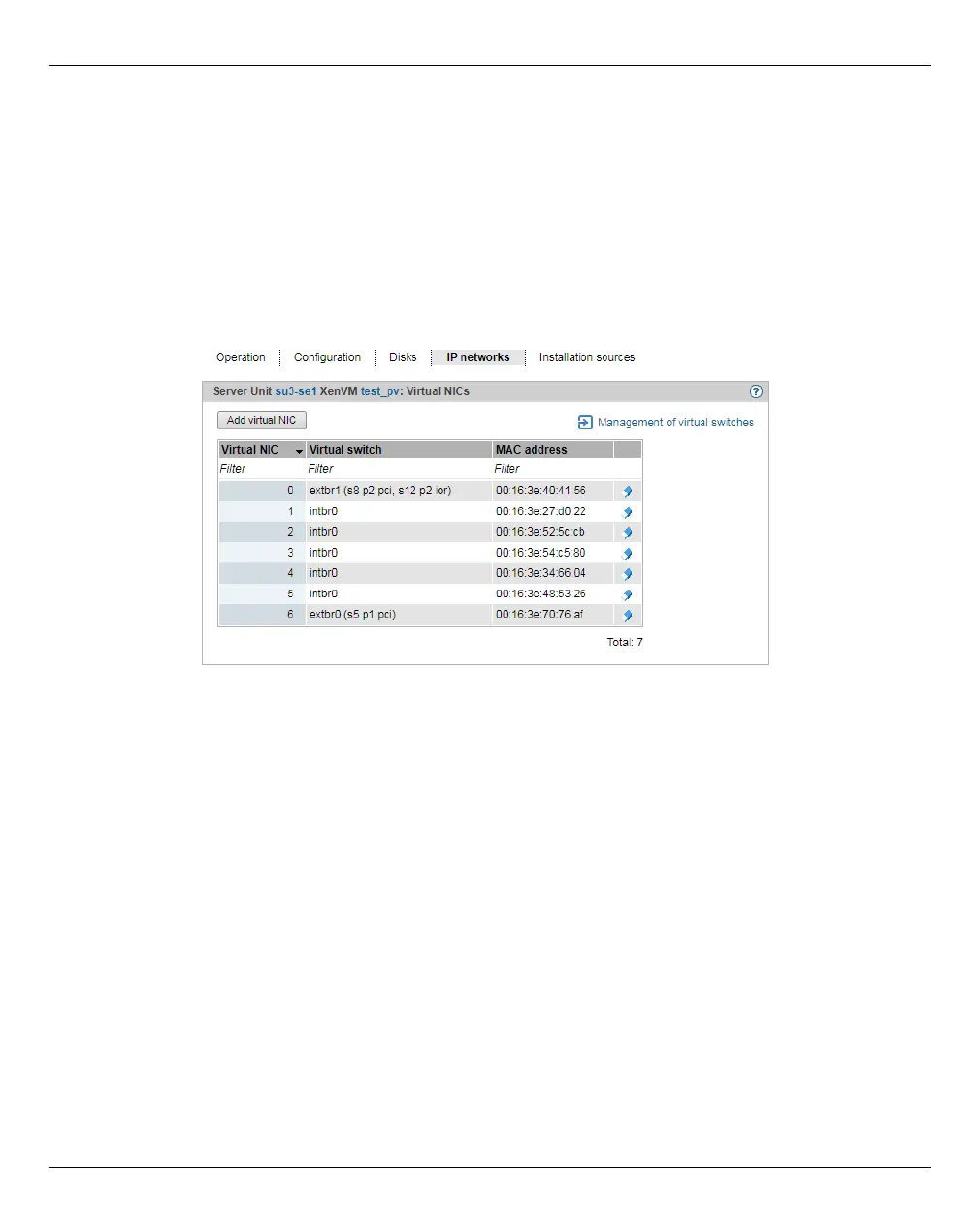 The IP networks tab displays the configured virtual NICs of the XenVM. You can add or