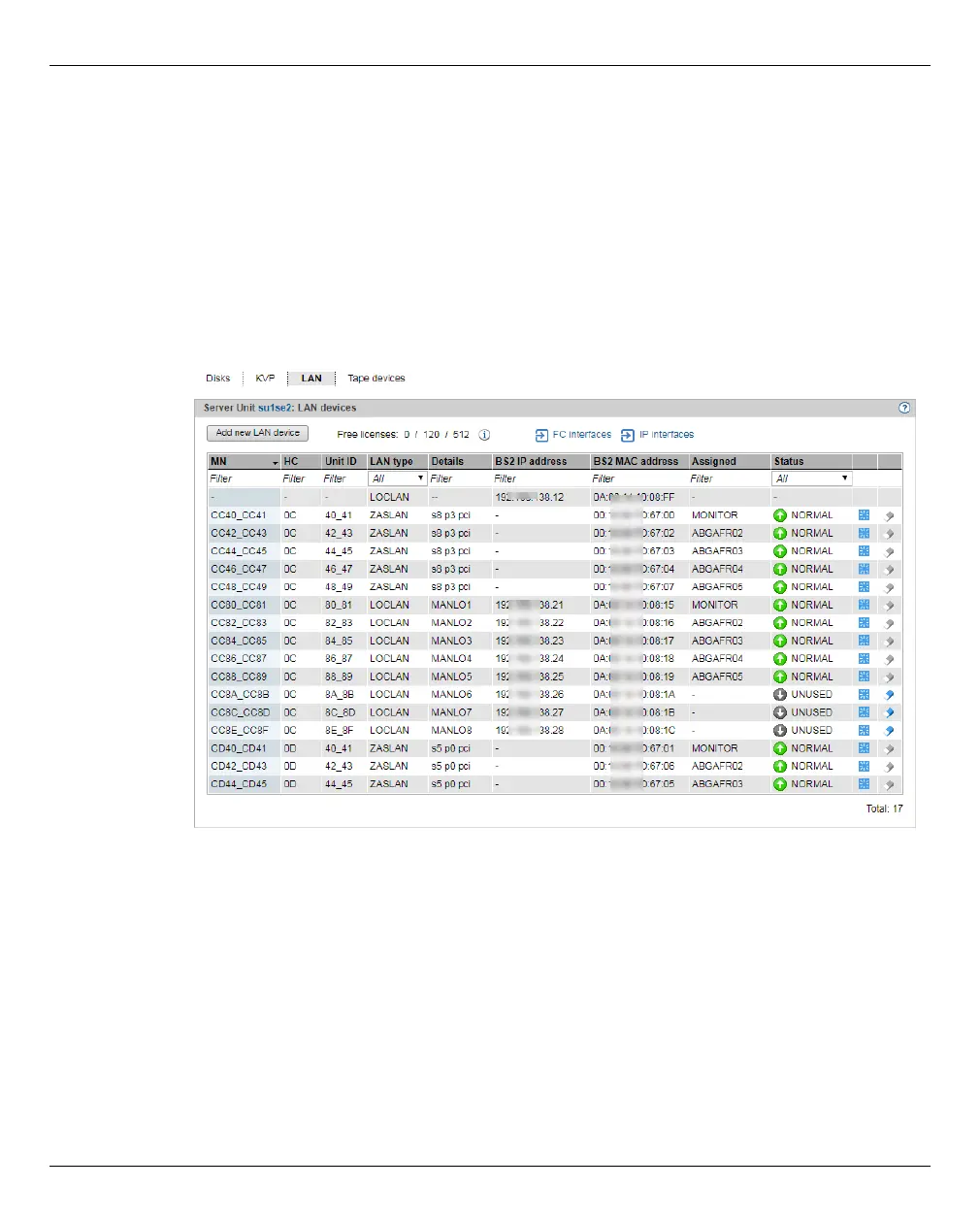 → BS2000 devices, LAN tab.