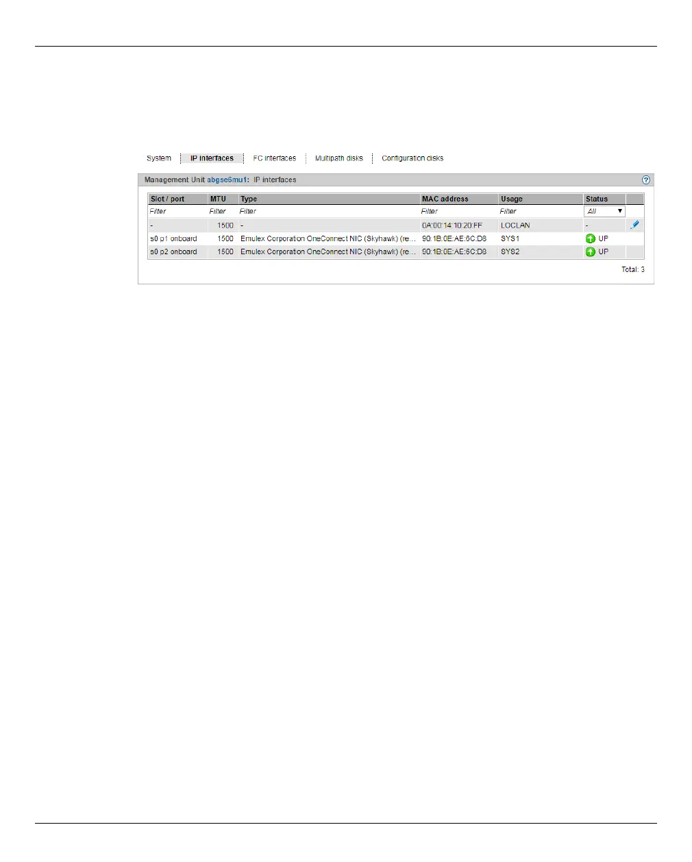 interfaces tab: