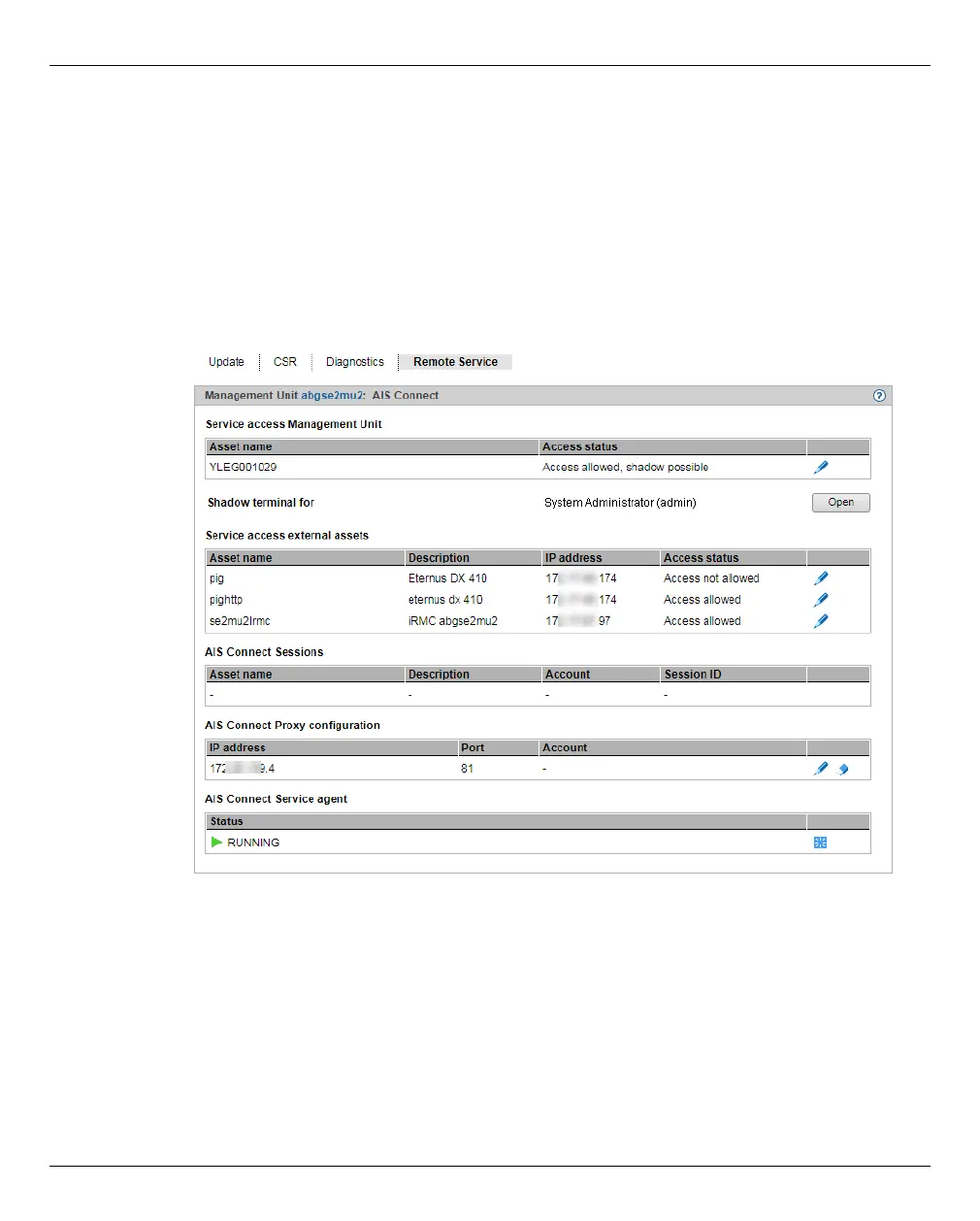 Service access is managed via the Management Unit. The Remote Service tab is provided in