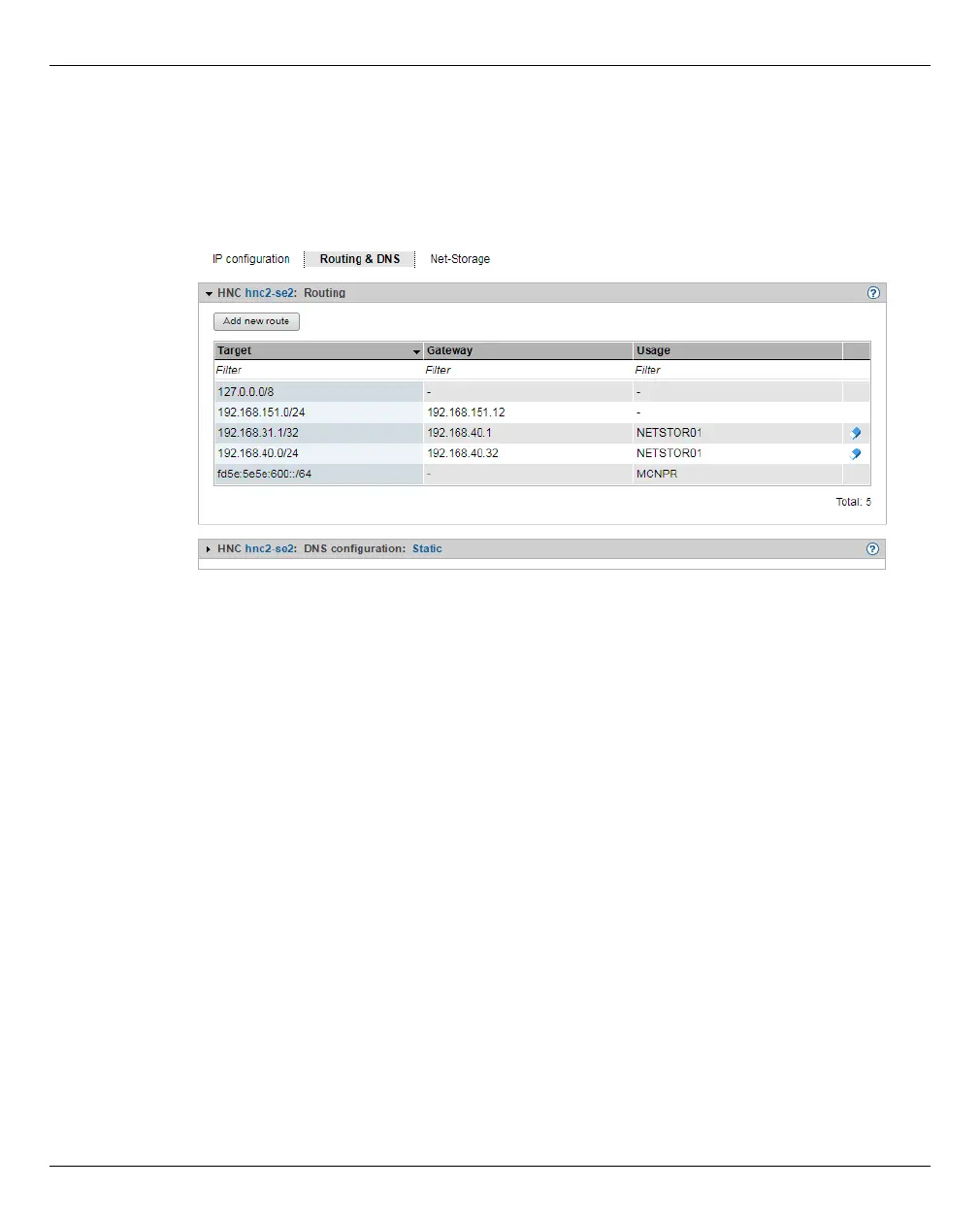 You manage routing of the HNC using the associated Management menu, Routing & DNS tab.
